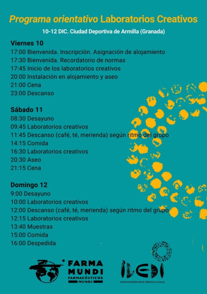 Cinco laboratorios artísticos-creativos tendrán lugar de forma simultánea entre los días 10 y 12 de diciembre en la Ciudad Deportiva de Armilla (Granada) para generar piezas que pongan en valor los derechos humanos, la justicia global, el derecho a la salud, la equidad o la diversidad cultural.