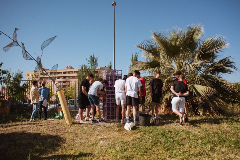 Alumnado del IES La Madraza durante una sesión de construcción del Tótem